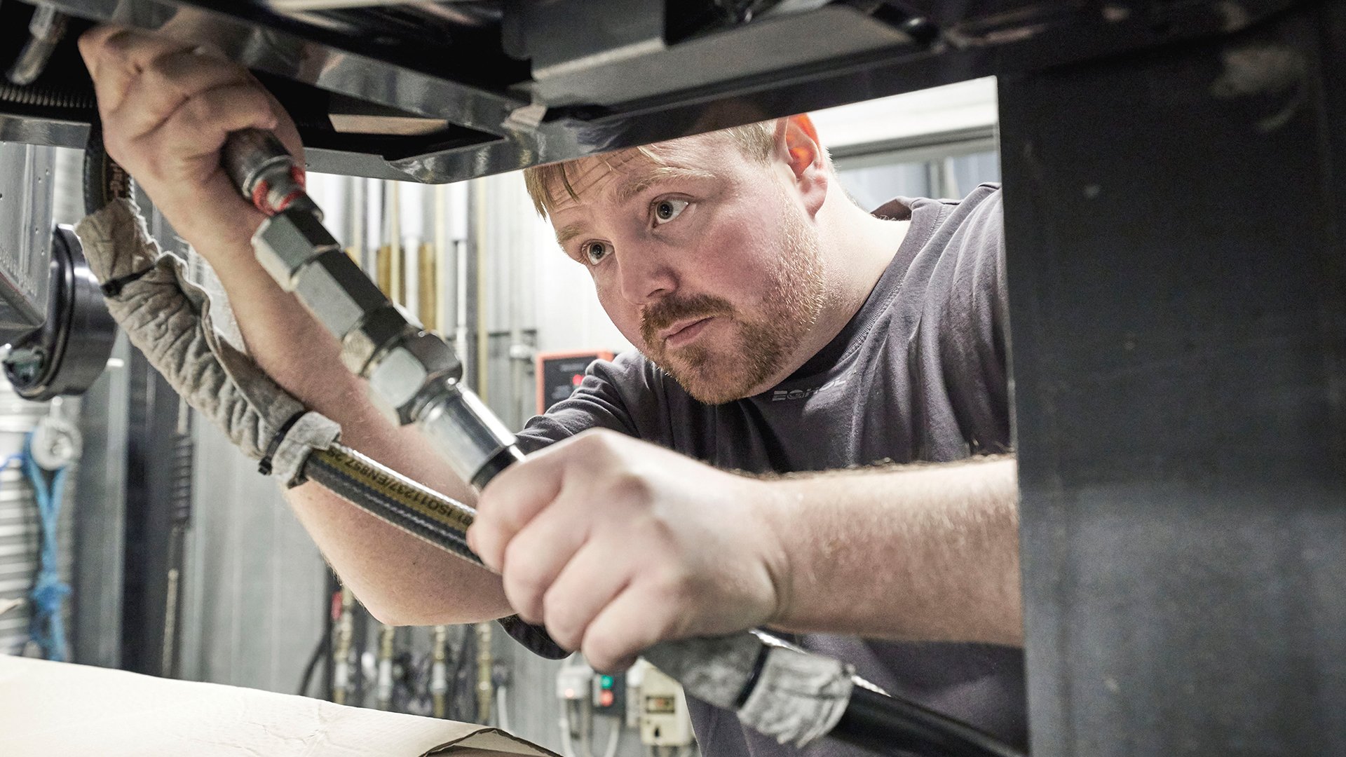 Men vad kan vi som företag göra för att bidra till den gröna omställningen, när våra maskiner tillverkas? Vi förbereder dem för användning av miljövänlig diesel (HVO100) och miljövänlig bensin (E85), som minskar CO2-utsläppen med 90 % respektive 65 %. Men vi fokuserar också på utbildning av de människor som dagligen servar och använder maskinerna, så att vi kan säkerställa den mest optimala driften och användningen, däribland maskinförarens möjligheter till en mer effektiv användning av maskinen.